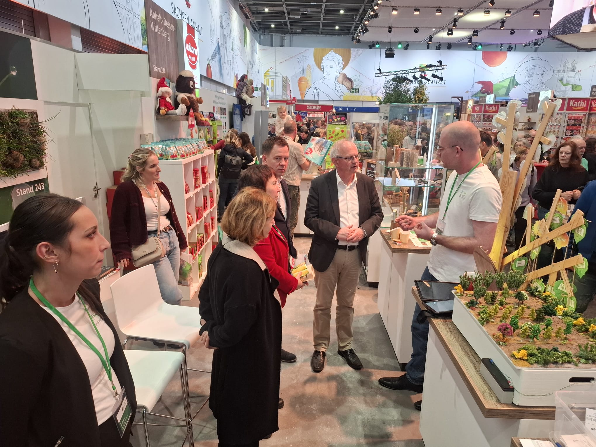 On Friday, 23 January 2026, four representatives of the Geoecology working group – Julia Pöhlitz, Mona Pawelke, Lena Büschel and Jan Lukas Wenzel – were guests at the “Research for the Future” stand at this year’s “Green Week” on “Agriculture Day”. This joint initiative of all universities in Saxony-Anhalt serves to present current research work to a broad public. We presented current work from the DiP-FaiReSyst and DiP-SMART Agroforst projects. On “Agriculture Day”, the exhibition stand was also visited by the State Secretary in the Ministry of Economic Affairs, Tourism, Agriculture and Forestry of Saxony-Anhalt, Mr Gert Zender, with whom a lively exchange took place on the climate-resilient design of Saxony-Anhalt’s landscape. We would like to thank the “Green Week 2026” for the opportunity to present our work and especially the team from “Research for the Future” at Anhalt University of Applied Sciences for the great organisation and the DiP coordination office for their support.