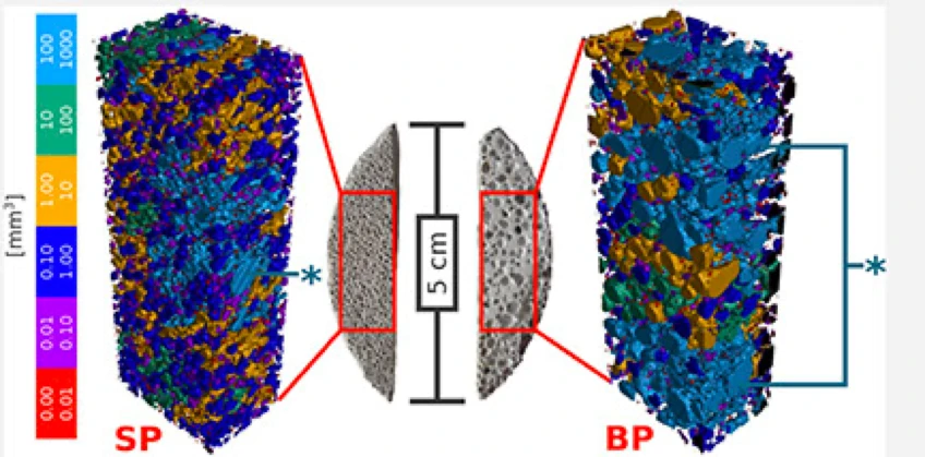 The Malvern-Panalytical EMPYREAN X-ray diffractometer ist with a Mo-LFF tube (or Cu tube), einem Rotary sample well für CT und einem hochmodernen Detektionssystem, dem GaliPIX3D, ausgestattet, das in der Lage ist, Daten zu sammeln, die für die 3D processing in der Computertomographie geeignet sind.Computed tomography (CT) provides the possibility to analyse various properties (e.g. quantity/type/connectivity of pores, Rissen, Einschlüssen, Mineralverteilung, Vorzugsrichtungen, Wanddicke, Oberfläche) durch dreidimensionale virtuelle Rekonstruktionen der Probe schnell und zerstörungsfrei zu analysieren und zu visualisieren.